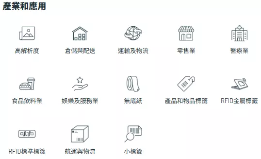 此系列可列印多種較難列印的耗材,包含較厚、較小、較長的標籤,或是產業應用中的特殊標籤。
